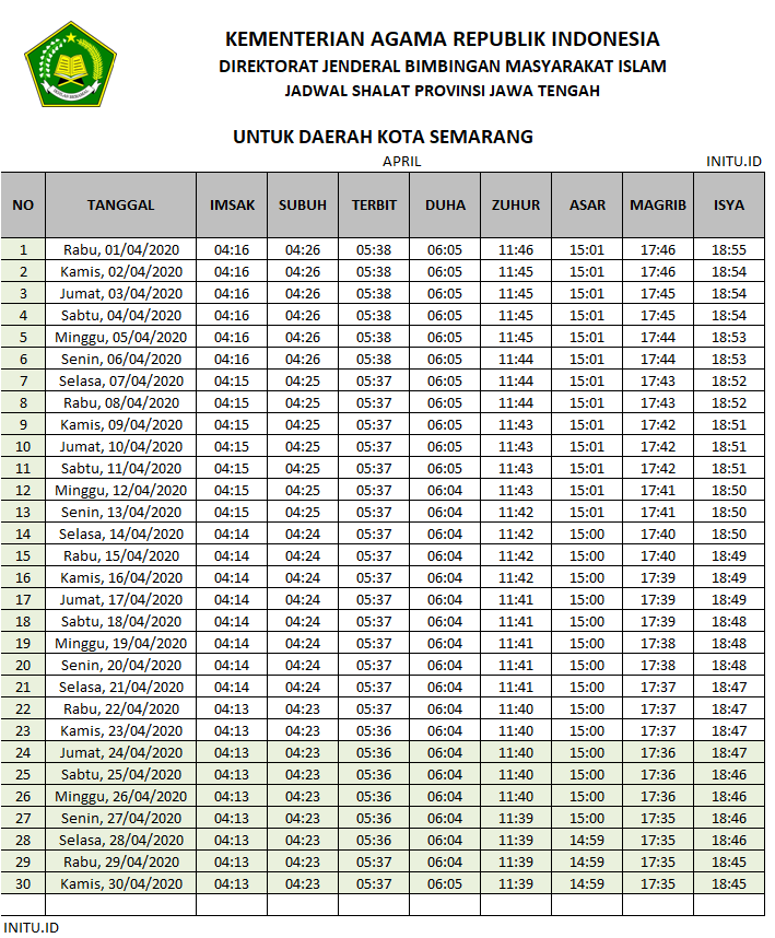 Jadwal Imsakiyah Ramadhan 2020 / 1441 H Semarang