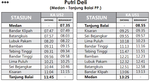 Jadwal Kereta Api Sireks, Putri Deli dan Sribilah (Medan ...
